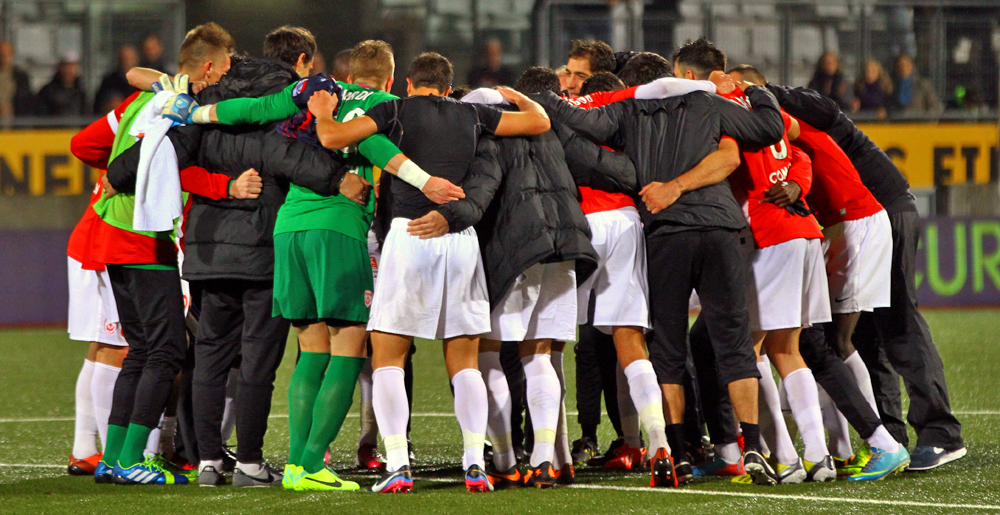 Depuis son retour à la tête de l’équipe, Pablo Correa a instauré un nouveau rituel après chaque succès. Joueurs, remplaçants et membres du staff se retrouvent dans le rond central « pour mettre un point final à la victoire ». L’entraîneur franco-uruguayen a découvert cette pratique lors de son arrivée à Evian, mais n’y a participé que trois mois plus tard après un important succès à Valenciennes (0-3) qui assurait le maintien à l’ETG. « Cela se fait beaucoup à la fin de la première mi-temps en Amérique du Sud afin de se dire les choses entre coéquipiers. Après une victoire, cela crée un lien entre nous. Dans le vestiaire, tout le monde ne participe pas forcément à cette joie collective. Cela donne aussi une possibilité au public de vivre ce moment fort. »
