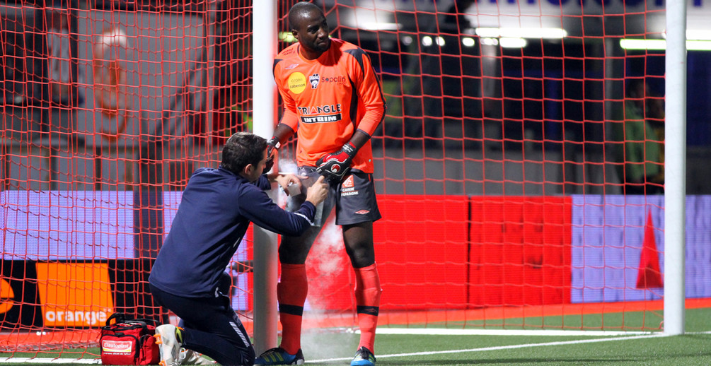 Sur un dégagement au pied lors de la deuxième mi-temps face à Valenciennes, Guy-Roland Ndy Assembe s’est blessé à l’adducteur. Les examens ont révélé une petite lésion qui nécessite deux semaines d’arrêt. « C’est dur à encaisser, a commenté l’ex-Nantais. Comme la douleur s’était estompée ce matin au réveil, j’avais l’espoir que cela allait passer. » Ce n’est donc pas le cas ce qui va obliger l’international camerounais à laisser ses gants à Damien Gregorini pour les deux prochaines rencontres face à Toulouse et Evian-Thonon-Gaillard.