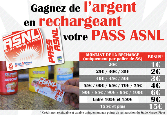 À partir de ce dimanche, les spectateurs de Marcel-Picot gagneront de l’argent en rechargeant leur Pass ASNL. Les crédits seront ensuite uniquement utilisables aux points de restauration du stade.