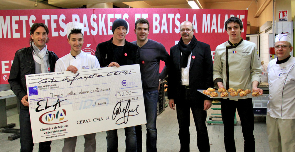Damien Gregorini, Sébastien Puygrenier et l’entraîneur des féminines Frédéric Biancalani ont accompagné des représentants d’ELA ce mardi matin au CEPAL de Laxou afin de remercier les élèves pour leur mobilisation.