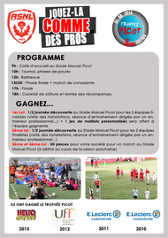 Qui va succède au centre E. Leclerc Vandoeuvre (2010, 2011), l’UFF (2012) et Helio Service (2014) au palmarès du trophée Picot ? Réponse le 1er juin lors de la 5ème édition du tournoi des entreprises organisé par l’ASNL sur la pelouse du stade Marcel-Picot.