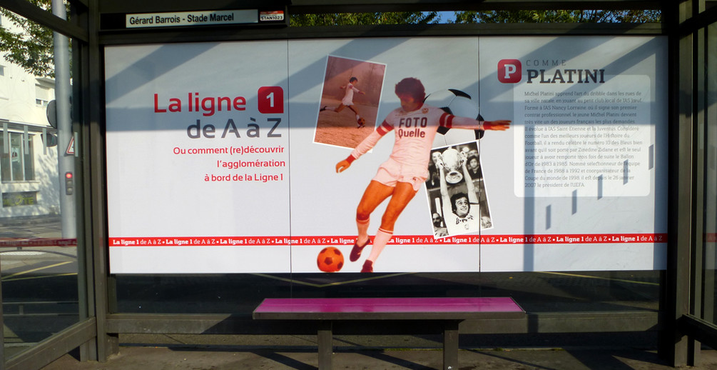 Depuis quelques semaines, la station Gérard Barrois - stade Marcel-Picot s’est habillée aux couleurs du joueur le plus emblématique du club. Michel Platini y apparaît notamment brandissant la coupe de France gagnée en 1978.