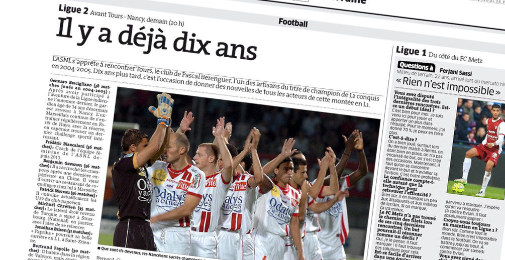 Vingt-quatre joueurs ont participé à l’obtention du titre de champion de France de Ligue 2 lors de la saison 2004/2005. Dix ans plus tard, l’Est Républicain les a tous retrouvés. Ce qui n’était pas forcément simple pour quelques-uns d’entre eux. On apprend par exemple que Bertrand Fayolle est désormais commercial chez Ford ou que Philippe Celdran travaille comme chargé d’étude dans la société de Louis Nicollin à Montpellier.