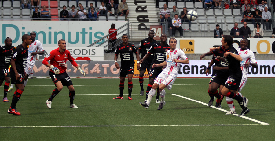 Le SRFC se crée sa première occasion après une demi-heure de jeu. Et quelle occasion. Gennaro Bracigliano détourne un centre à ras de terre. Victor Hugo Montano reprend le ballon en pivot mais Michaël Chrétien repousse sur sa ligne au deuxième poteau. Stéphane Dalmat frappe en force à quinze mètres mais trouve André Luiz sur la trajectoire (29’). Jires Kembo-Ekoko régale les spectateurs d’une superbe roulette puis frappe en force dans la tribune (40’). C’est la seule action digne d’intérêt de ce dernier quart d’heure de la première période.