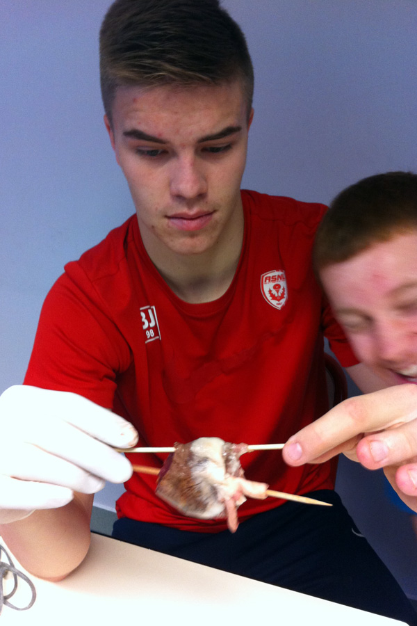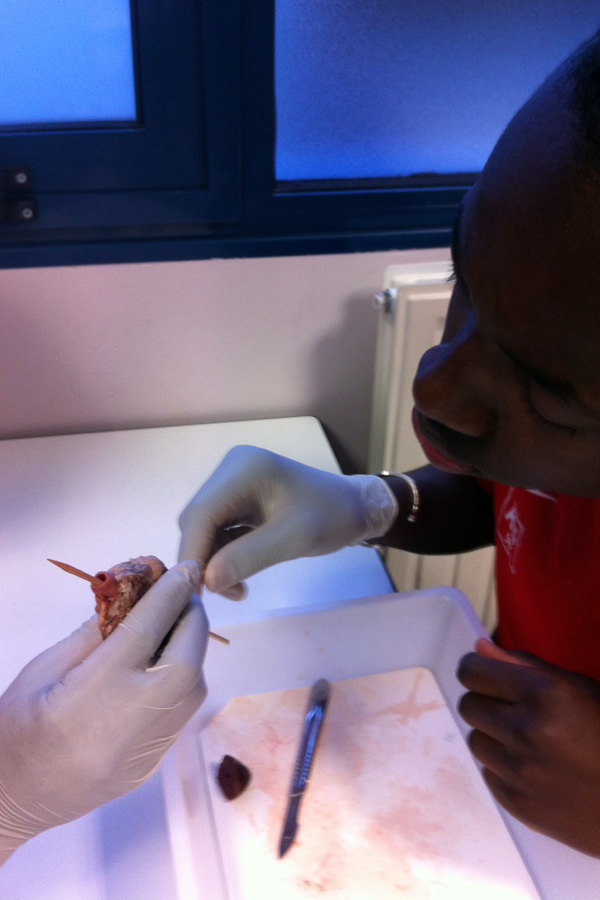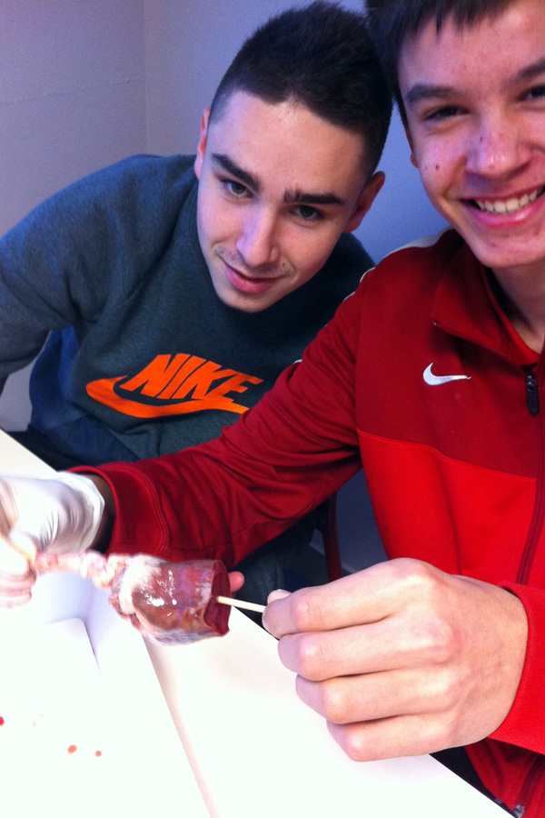 Le cœur est constitué de 2 parties distinctes (voir les pic à brochette) : oreillette et ventricule droits et oreillette et ventricule gauche.