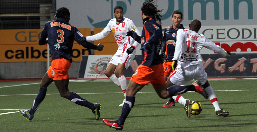 Sur une jolie combinaison en triangle entre Julien Féret, Djamel Bakar et Youssouf Hadji, ce dernier manque de peu de livrer une passe décisive à l’ex-Rémois (22’). Montpellier joue en contre. Sur un long centre d’Olivier Giroud au deuxième poteau, Damien Gregorini se dresse en ultime rempart pour détourner une reprise à bout portant de Souleymane Camara (29’). Youssouf Hadji répond en transperçant les lignes du MHSC. Son centre en retrait se termine au final par une frappe du gauche de Jonathan Brison captée par Geoffrey Jourdren (39’). D’une déviation, l’international marocain ouvre la voie du but à Jordan Loties. Le défenseur prend tout le monde de vitesse et donne le ballon à Djamel Bakar qui manque complètement sa reprise (41’).