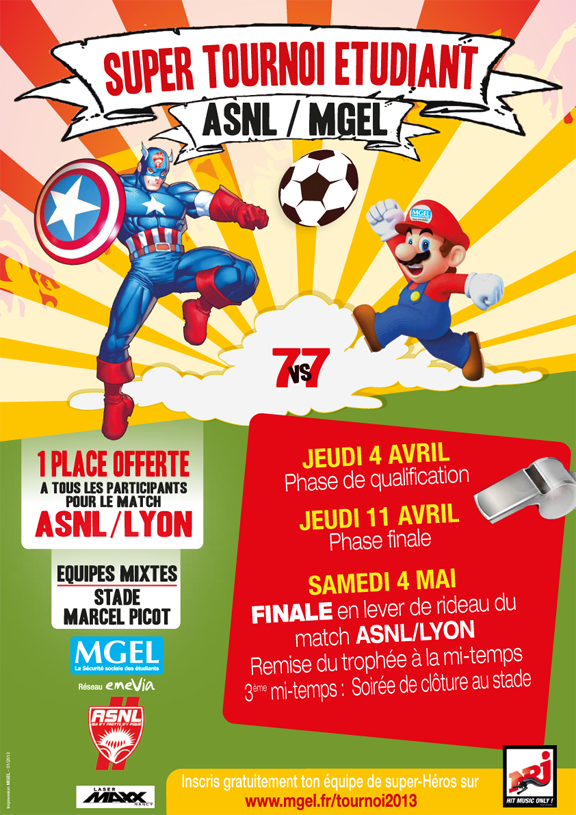 Pour cette nouvelle édition, le tournoi des étudiants organisé par l’ASNL et la MGEL s’habille aux couleurs des héros de comics ou de jeux vidéo. Il se déroulera en trois phases avec des qualifications le jeudi 4 avril, un tableau final le jeudi 11 avril et une finale le 4 mai sur la pelouse de Marcel-Picot en lever de rideau de la rencontre face à l’Olympique Lyonnais. Tous les participants au tournoi seront d’ailleurs invités à ce match de Ligue 1. Pour s’inscrire gratuitement, il suffit de se rendre sur la page du tournoi sur le site de la MGEL à partir du jeudi 21 février à 22 heures.