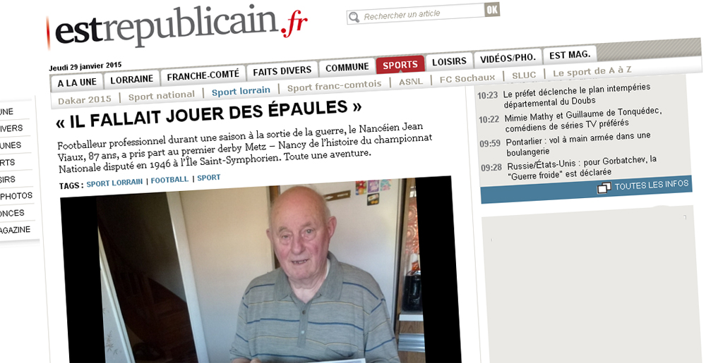 Footballeur professionnel au FC Nancy durant une saison à la sortie de la guerre, Jean Viaux vient de décéder à l’âge de 90 ans. Il y a un an et demi, ce Jarvillois supporter de l’ASNL racontait dans l’Est Républicain avoir disputé le premier derby lorrain. C’était en 1946.