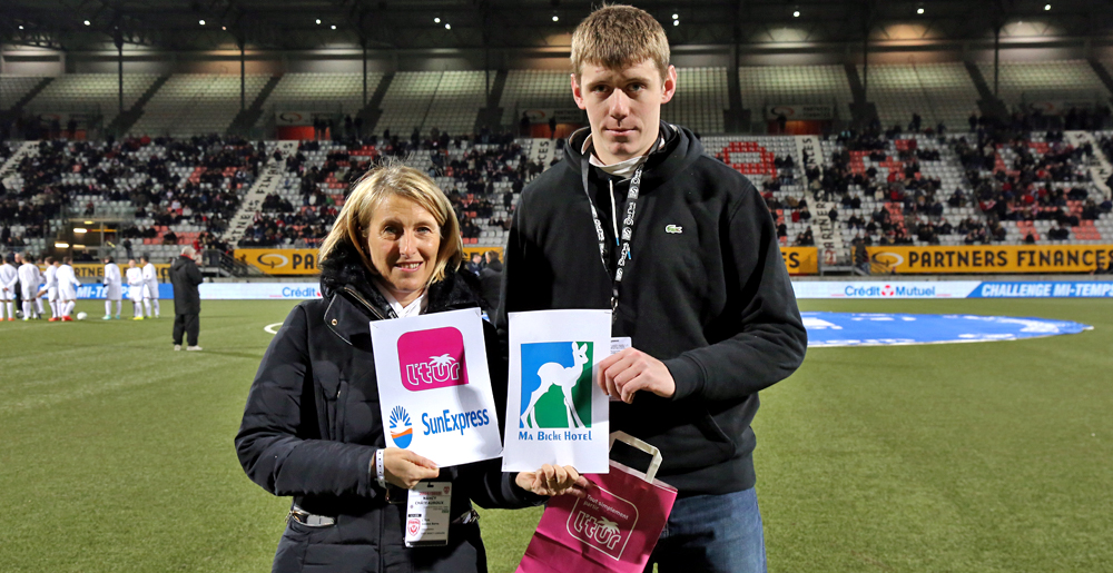 À la mi-temps de la rencontre face à Châteauroux, Christelle Saintot, responsable de l’agence L’Tur de Nancy, a remis son cadeau au gagnant de la golden barre.