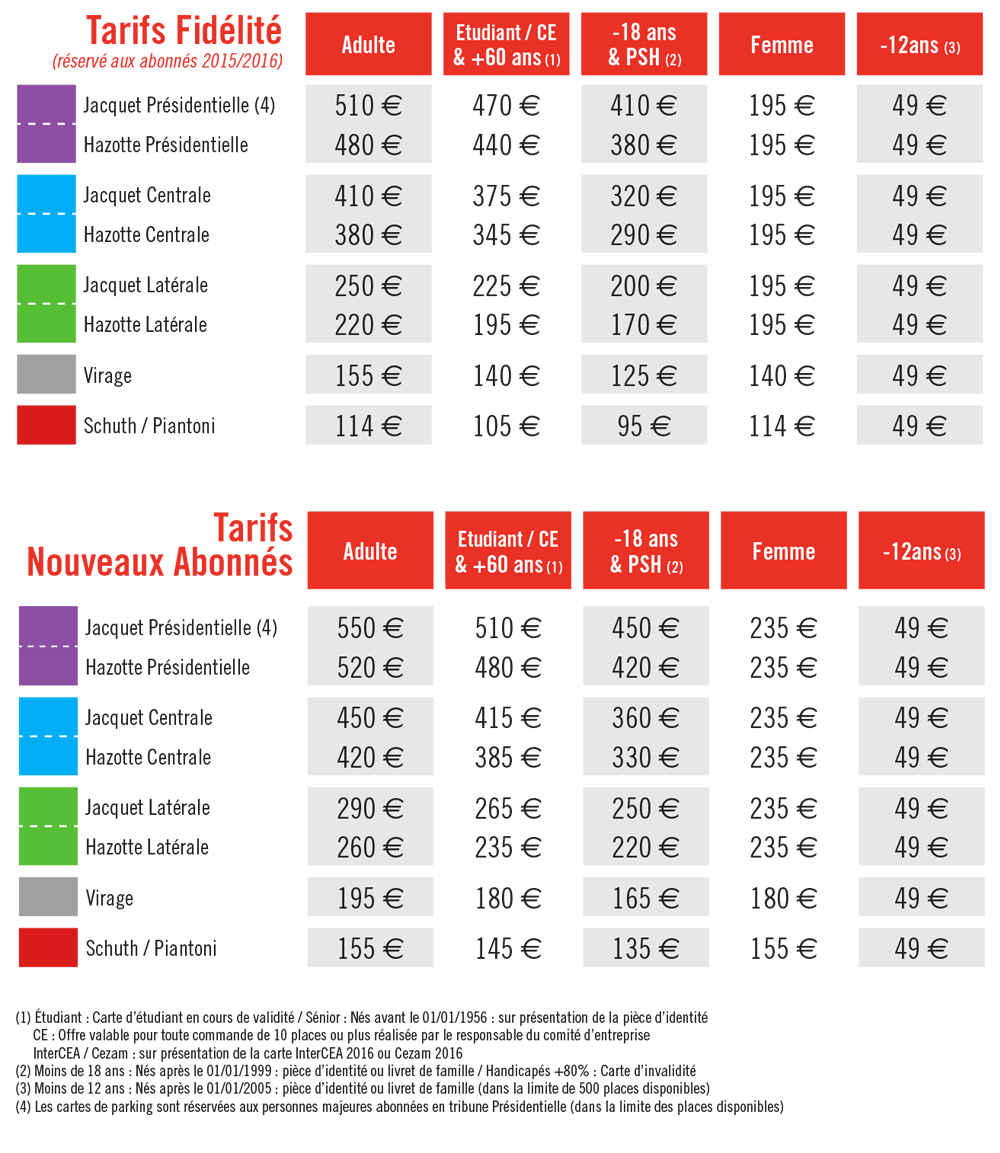 Pour bénéficier du tarif CE, merci de vous rapprocher de votre responsable CE qui fera les démarches auprès du service Billetterie. Aucun (ré)abonnement CE ne sera traité aux guichets du Stade.