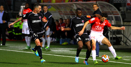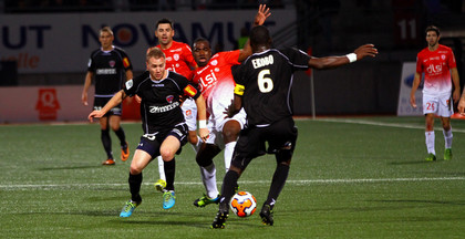 Pour son retour à Marcel-Picot après plus de deux ans d’absence, Pablo Correa a procédé à quelques ajustements dans le onze de départ, optant pour une défense à quatre et positionnant Moukandjo au poste d’avant-centre. L’international camerounais entre immédiatement en action. Après une course dans le couloir gauche, il repique vers le centre et adresse une frappe puissante que Farnolle repousse des poings (1’). Sa volée du gauche, après joli triangle avec Cuvillier et Louis, est également repoussée par le gardien (11’).
